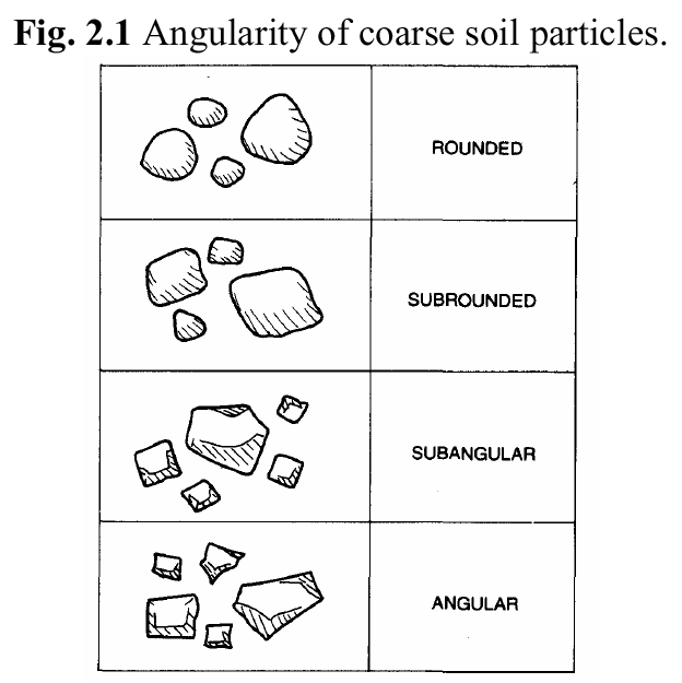 Morfología de las partículas gruesas (fuente: Site Investigation; Clayton, Matthews & Simons, consultado en http://www.vulcanhammer.net/geotechnical/Site_Investigations.pdf)